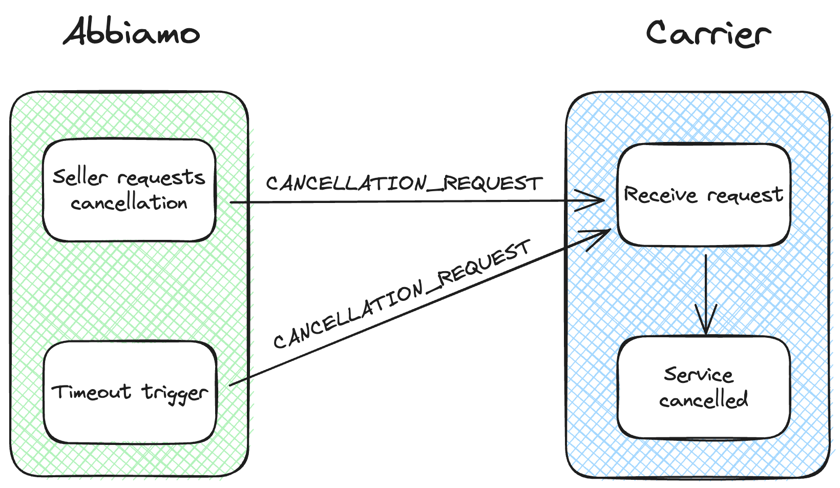 - The seller triggered the action of cancellation. This action is personalized for the carrier for specific statuses